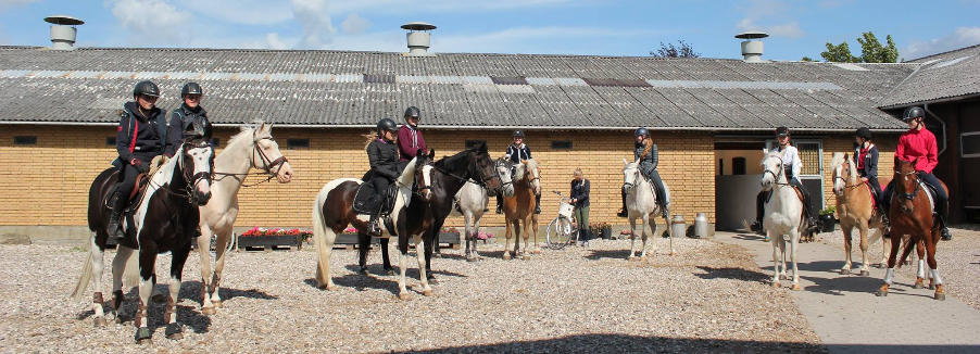 Vi har rideskole hold flere dage om ugen til alle niveuaer - med tilhørende arrangementer som elevstævner og juleafslutninger.